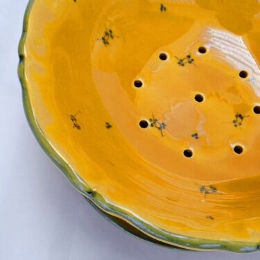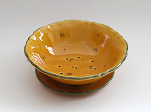 お皿には穴が空いていて余分な水分は受け皿に落ちる仕組み。イチゴやブドウなどを入れて、日常便利にお使いください。